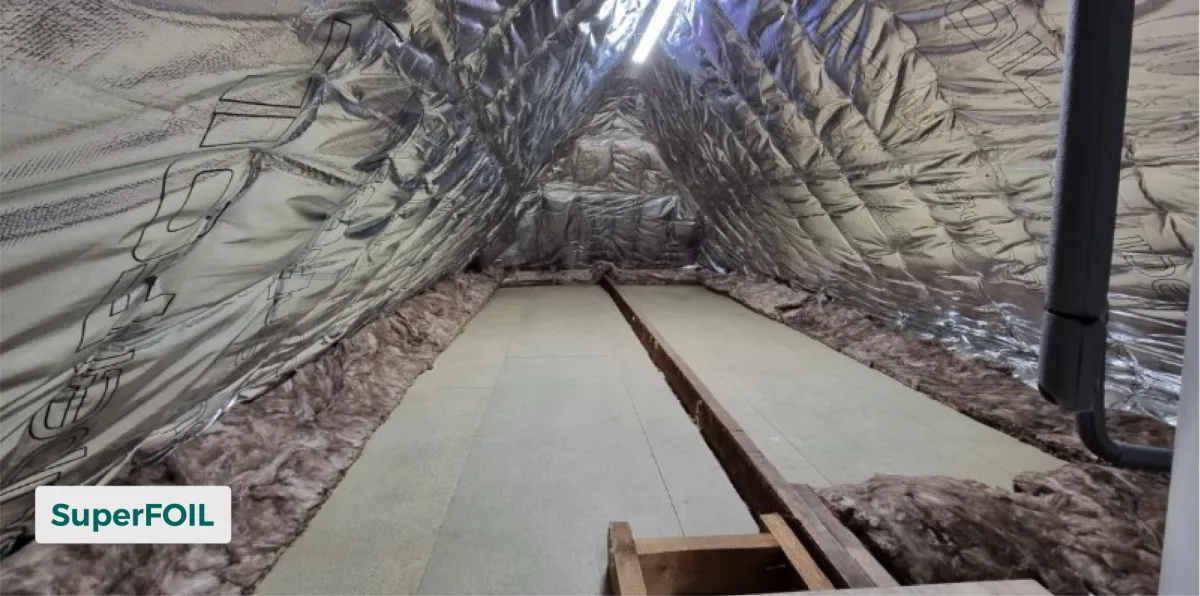 With no lengthy waiting, we thoroughly assessed the property before establishing that foil insulation was the most suitable material to use. Since the property in question was a “quirky” ‘60s style house without modern trussed roofing, the SuperFOIL could be safely fitted.